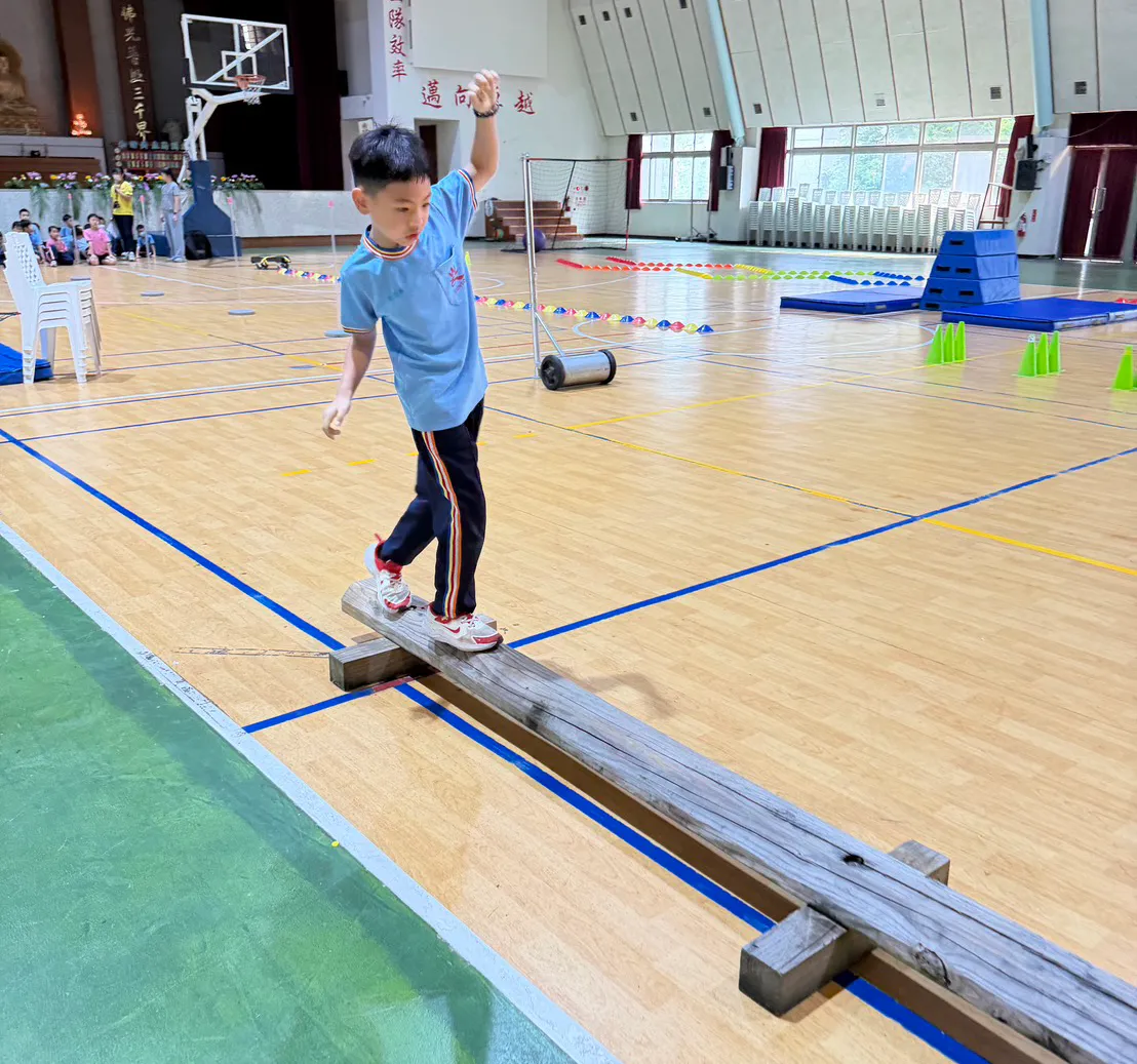 競賽過程中,孩子們全神貫注地投入各項關卡,無論是趴地穿越網區的艱辛,還是穩健走過平衡木的沈著,每一個動作都反映出學子們對任務的努力與堅持。校方表示,這項活動的核心價值不僅在於體能的提升,更重要的是引領學生在實作中培養「解決問題的勇氣」,讓孩子在完成任務的瞬間,體會到透過努力獲得的純粹成就感。全程見證了這群優秀小一、小二學子的亮眼表現,對於孩子們在賽場上展現出的堅韌意志與勇敢跨越障礙的勇氣,校長給予了高度的肯定與讚賞。校方期許透過此類情境式的體能競賽,能將健康的體魄與不畏困難的精神深植於孩子心中,成為未來學習道路上最堅實的後盾。