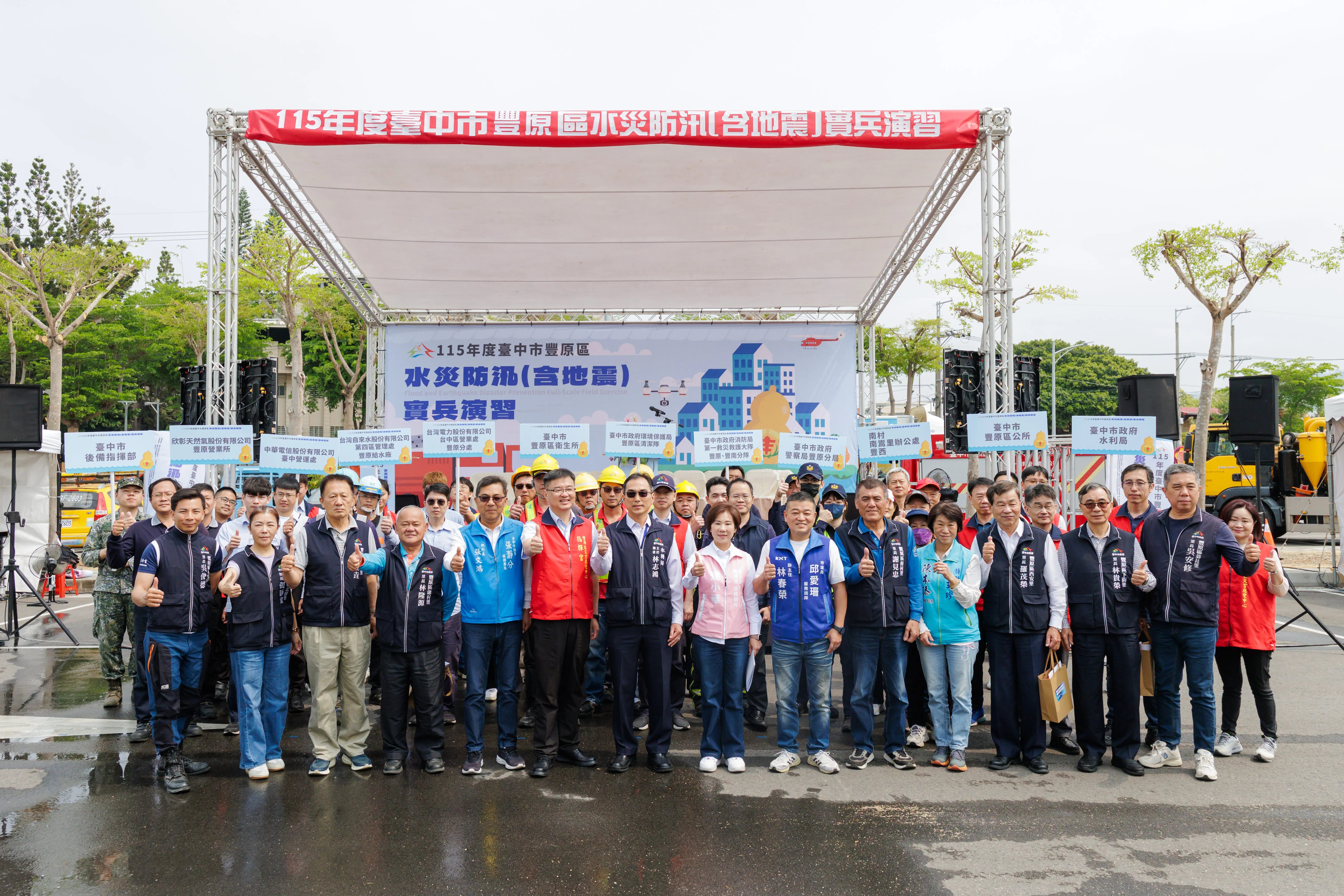 臺中市政府水利局與豐原區公所日前聯合舉辦「115年度臺中市豐原區水災防汛(含地震)實兵演習」。為強化地方面對極端天氣與突發災害的應變韌性,臺中市政府水利局與豐原區公所日前於豐原北陽站停車場聯合舉辦「115年度臺中市豐原區水災防汛(含地震)實兵演習」。本次演習旨在全面檢視政府機關與各防災單位在緊急狀況下的應變效能,並透過公私協力的資源整合,構築更堅實的城市防護網。