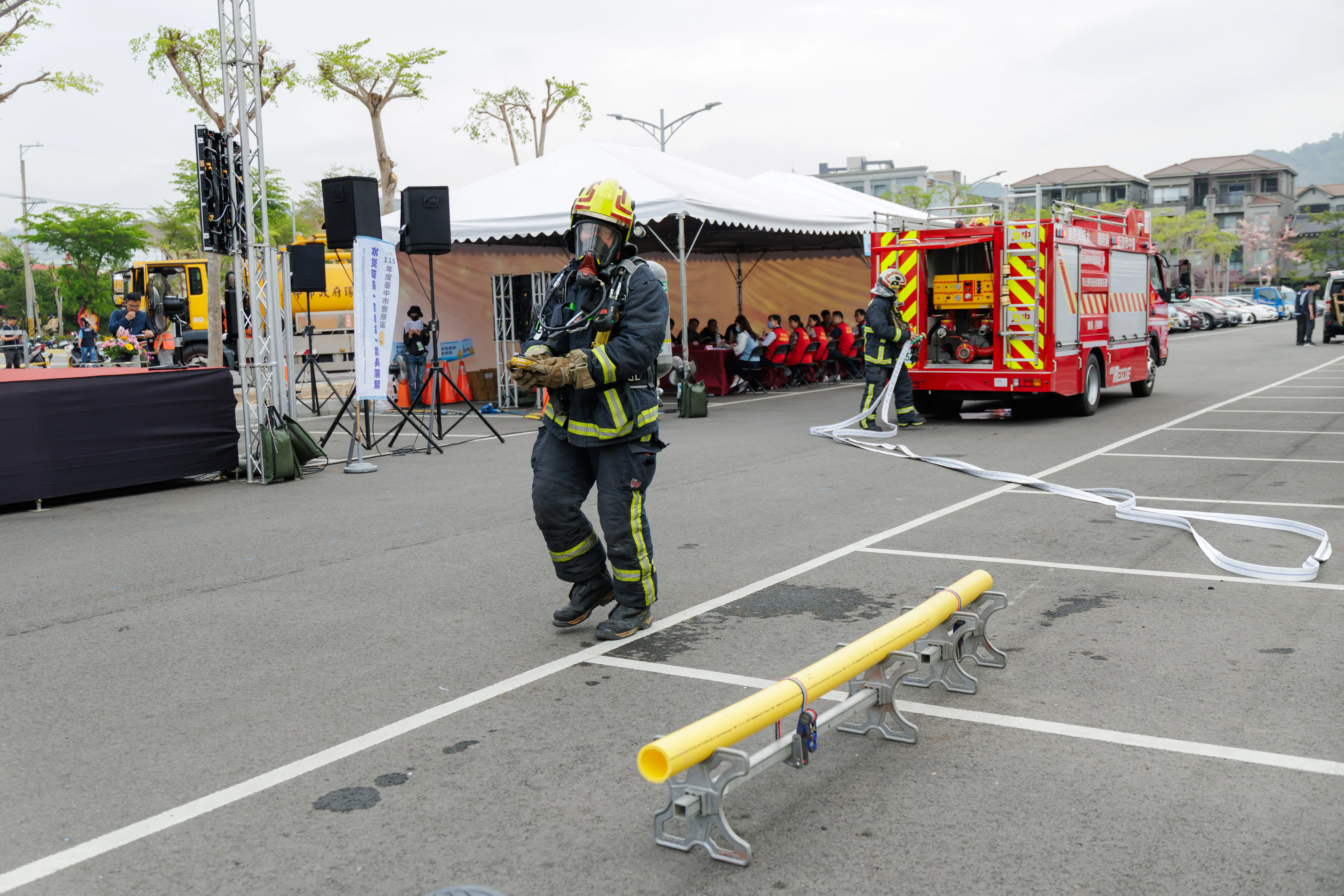 演習當中消防隊進行消防作業
