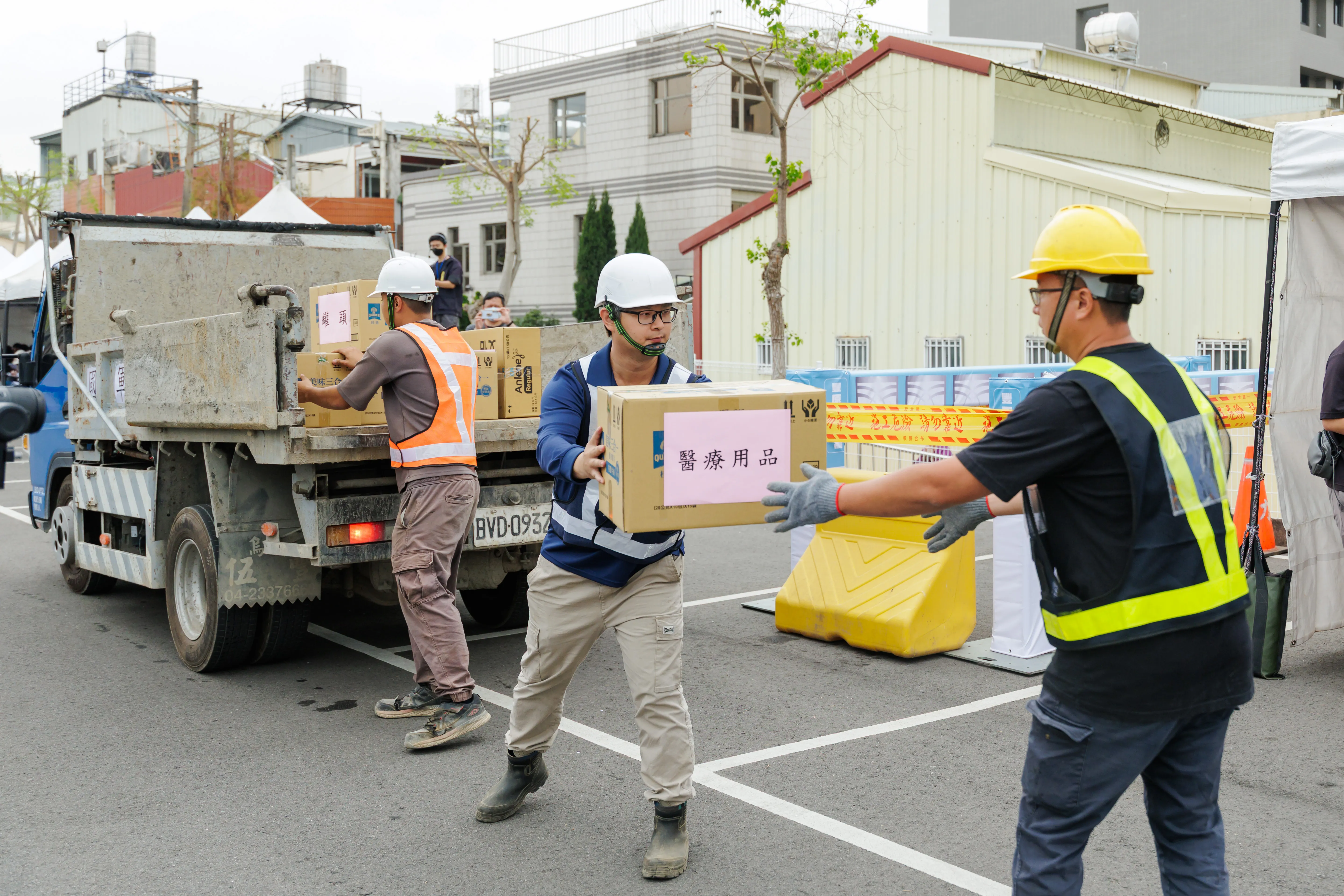 演練當中模擬災情後,民間團體與政府單位進行物資運送。此次演習動員規模龐大,總計 66 名參演人員並配備抽水機、搶修重機具等資源。參演單位涵蓋警、消、環保、衛生、後備指挥部,以及台電、台水、中華電信與欣彰天然氣等民生公用事業單位。值得一提的是,在地社區亦積極投入,如南村里長率領環保志工隊參與側溝清疏與災後清理,充分展現「社區自主與互助」的防災機制。