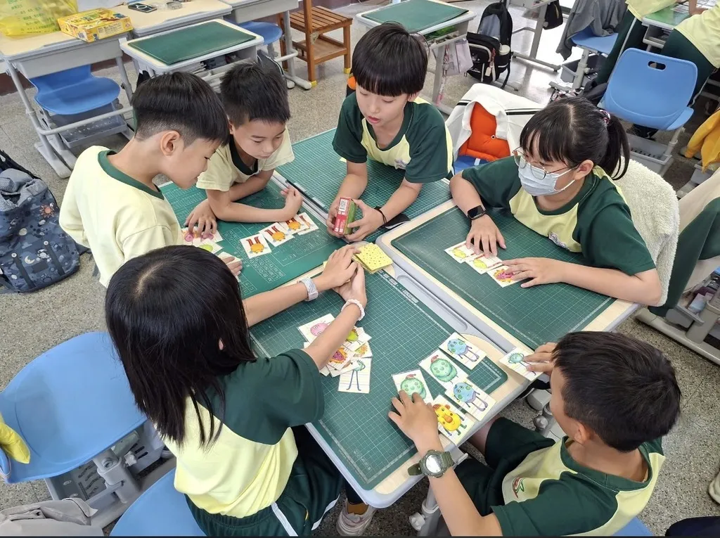 活動率先由「雙語桌遊課程」展開,校方針對不同發展階段的學生,依序安排低、中、高年級分時段參與。在教師的悉心指導下,學生們聚精會神地操作由桌遊老師準備的精緻教具,將英語學習與邏輯思考完美結合,展現出高度的學習熱情與專注力。