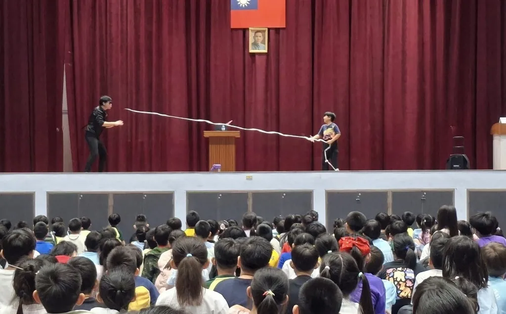 緊接著登場的是慶祝活動的重頭戲。在「春安館」內,校方特別邀請專業魔術師「魔術小潘」蒞校演出。魔術師以精湛的技巧與幽默的肢體動作,引發全場歡笑聲與掌聲不絕於耳;受邀上台參與表演的學生更展現出十足的「笑果」,為校園注入了滿滿的驚喜能量。