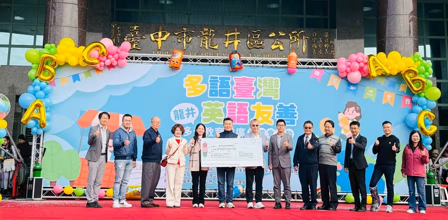 上週六(27日)上午,「多語臺灣、英語友善」龍井多元教育園遊會於龍井區公所廣場盛大登場,吸引近兩千位民眾參與,展現龍井區九所各級學校及西屯區東海國小一年來推動雙語教學的豐碩成果。活動開幕式中,財團法人恆心社會福利事業慈善基金會與金緯教育基金會共同捐贈新臺幣四百六十萬元,協助十所學校補足雙語教學設備、教師課外鐘點費等經費缺口,為在地雙語教育發展注入穩定且關鍵的支持力量,也讓學校能更積極擘劃明年度的雙語教學藍圖。