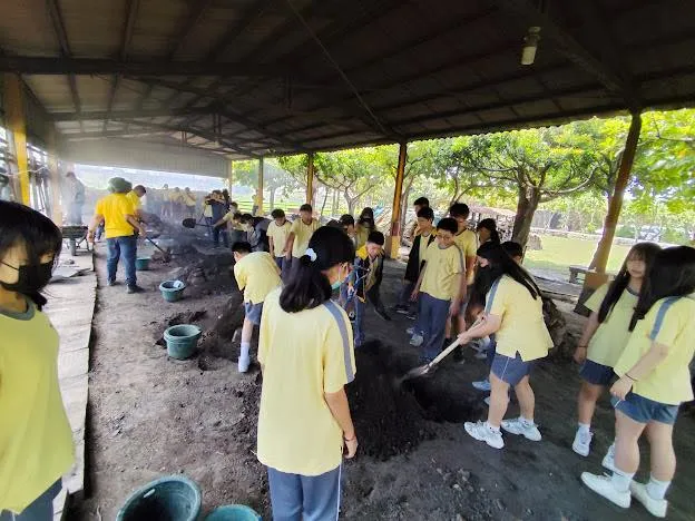 活動當天雖然天氣陰晴不定,但幸運地迎來涼爽的晴天。學生從大里出發沿途遠眺大肚山與八卦山,觀察中火與西海岸的自然景觀,展開了一場移動式的城鄉地理課。抵達農場後,在導覽員娜娜姊姊的熱情引領下,孩子們親手揀選土塊堆疊窯體,並參與「趕窯鬼」等傳統農村趣味儀式,體驗最道地的鄉土情懷。午間,師生共同品嚐由在地農產如高麗菜、花椰菜以及用心燉煮的東坡肉組成的澎湃午餐,體驗「從產地到餐桌」的鮮甜美味。