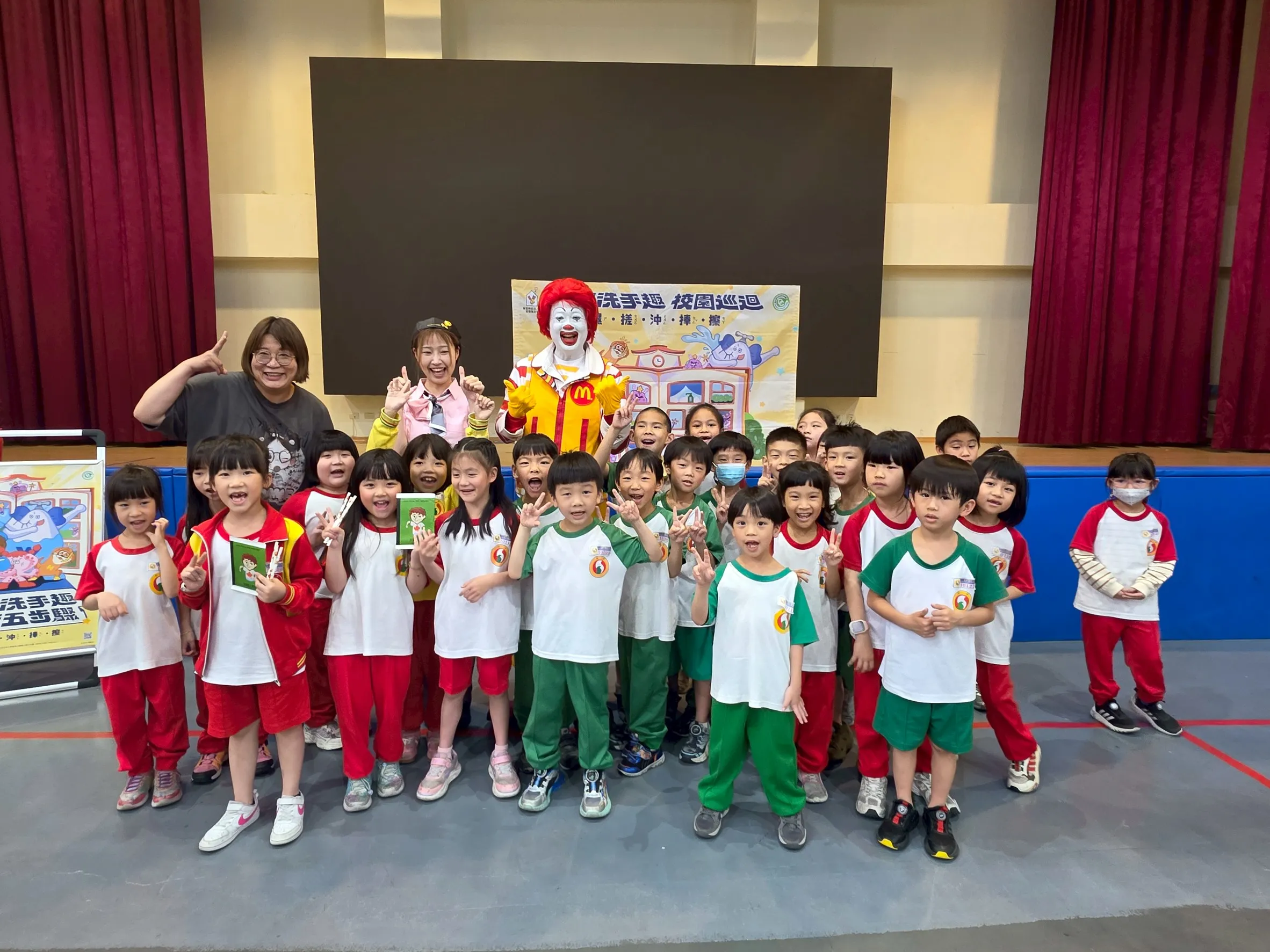 有獎問答中,學童們積極搶答,精準點出正確洗手的七字訣「內外夾弓大立腕」。活動現場氣氛熱烈,麥當勞叔叔帶領全校師生大跳熱情的「洗手舞」,將繁瑣的洗手五步驟「濕、搓、沖、捧、擦」編入歌詞與舞步中,讓宣導活動宛如一場校園嘉年華。在隨後的有獎問答中,學童們積極搶答,精準點出正確洗手的七字訣「內外夾弓大立腕」。學生洪孟漢興奮地表示,能與偶像一起跳洗手舞非常開心,並期許大家都能保持健康、遠離腸病毒。面對腸病毒威脅,家長會長湯展智指出,家長在流行季節往往提心吊膽,這種寓教於樂的宣導方式,比起口頭告誡更能有效引發孩子的學習動機。現場愛心媽媽也化身洗手小隊,共同守護學童健康。