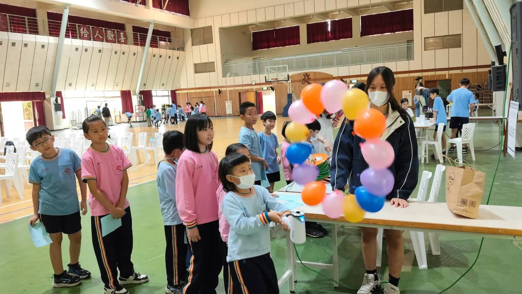 均頭中小學國中部八年級的學生擔任關主,為國小部的弟弟妹妹們設計一系列科學闖關活動。