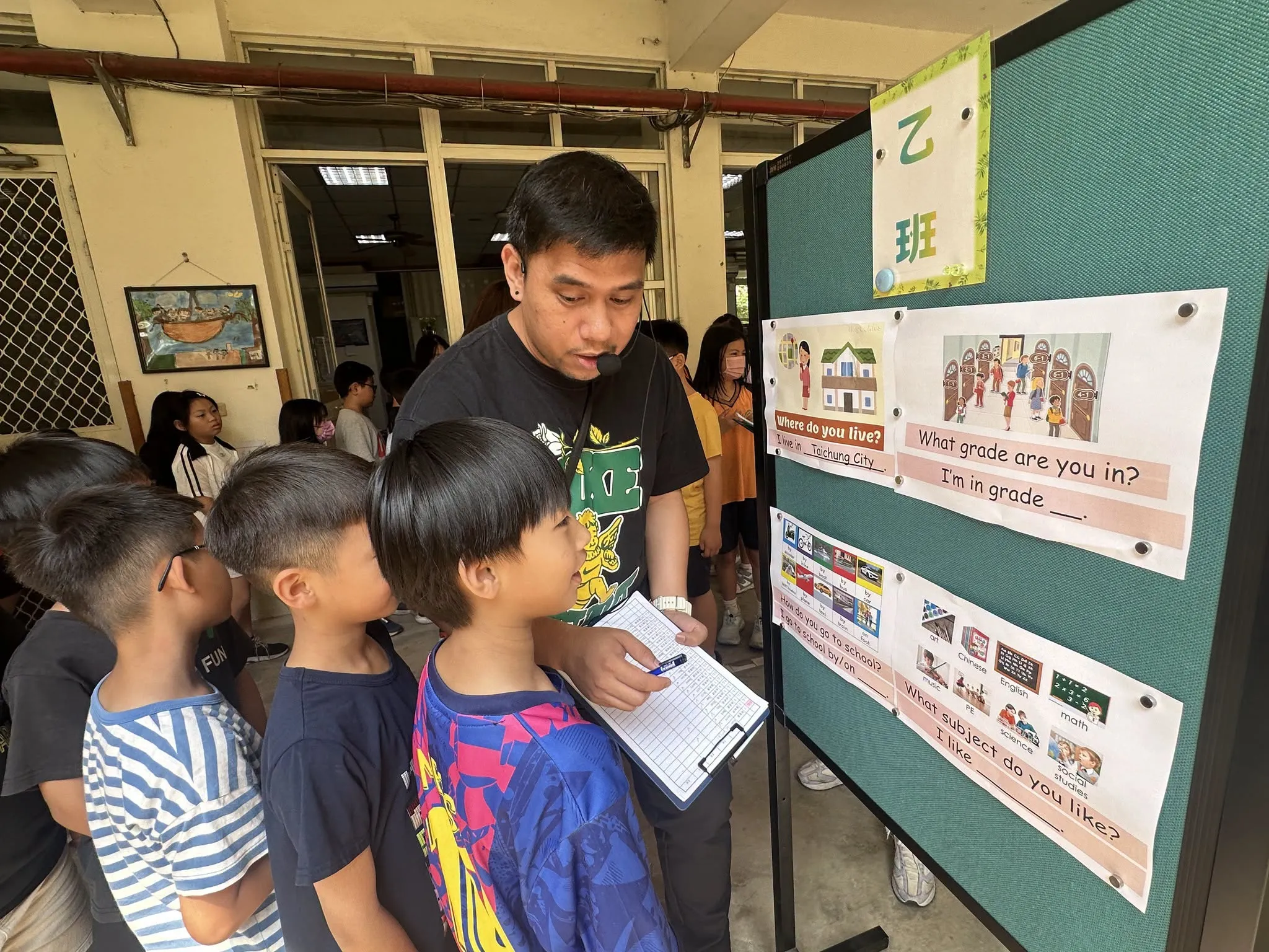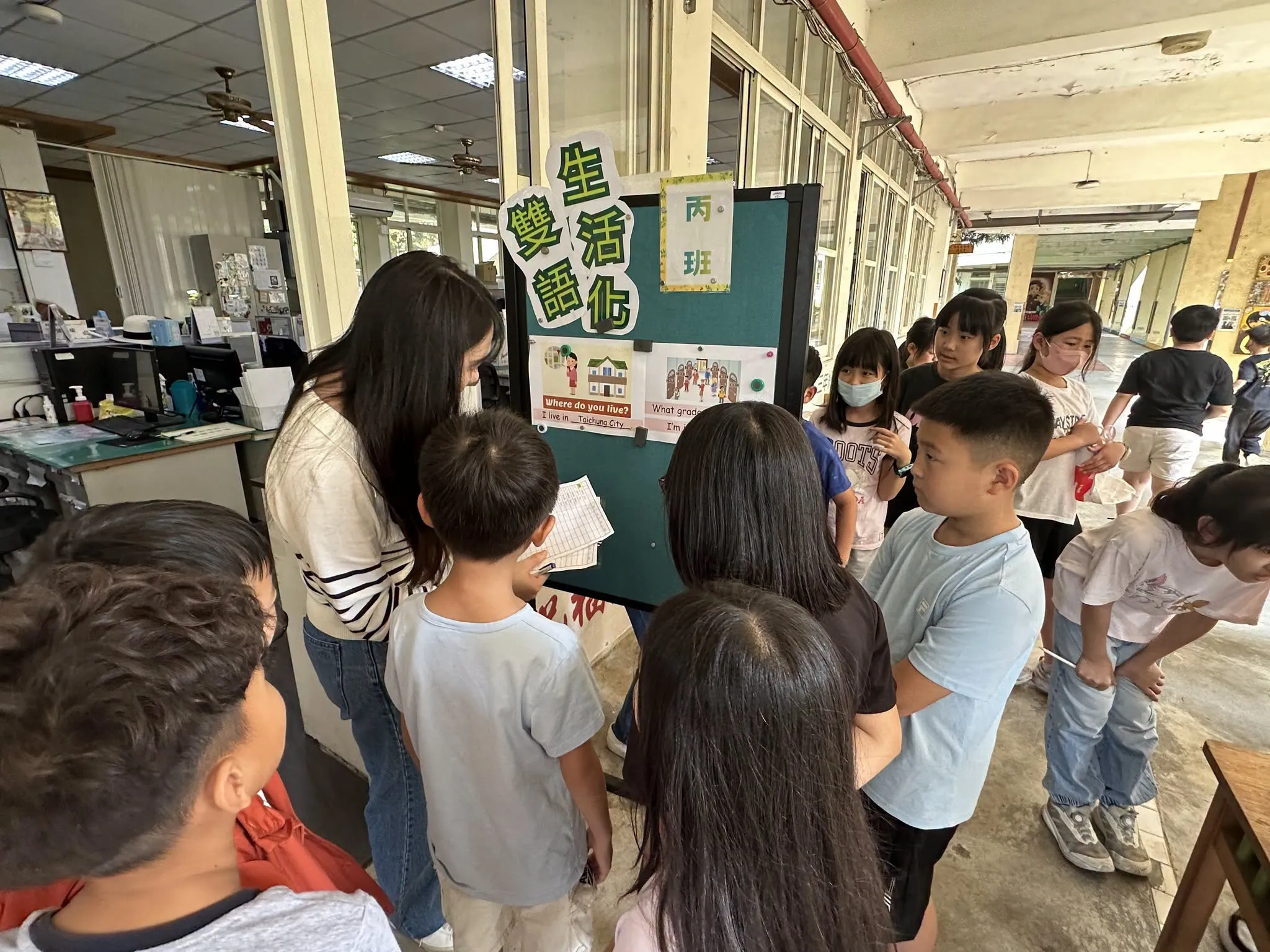 在闖關現場,氣氛既專業又充滿童趣。不少孩子在正式上場前仍緊張地反覆小聲練習,但在外師與校內教師的親切引導與鼓勵下,學生們逐漸克服心理障礙,表現得越來越自然且大方。當看見孩子們在闖關成功後開心地比出勝利手勢,那份「學會並敢用」的成就感,正是雙語生活化計畫中最珍貴的教學成果。除了扎實的語言測試,園方也貼心安排了深具「儀式感」的抽獎環節,有效帶動了全校學生的參與熱忱,讓英語學習與快樂的情感記憶深度連結,進一步轉化為長期學習的內在動機。