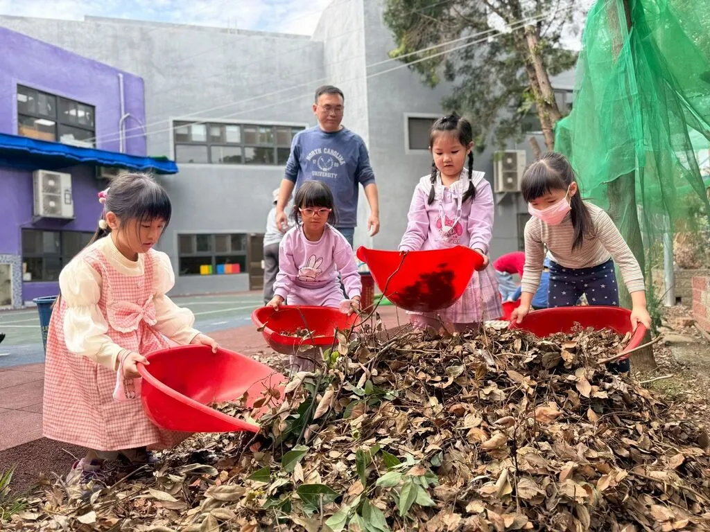 這次的山羊班超級任務不僅是體力勞動,更是一場深刻的環境教育實踐。孩子們往返多趟將落葉運送至酪梨堆肥場,親身體驗資源循環利用、落葉變肥料的過程,以具體行動落實愛地球的理念。