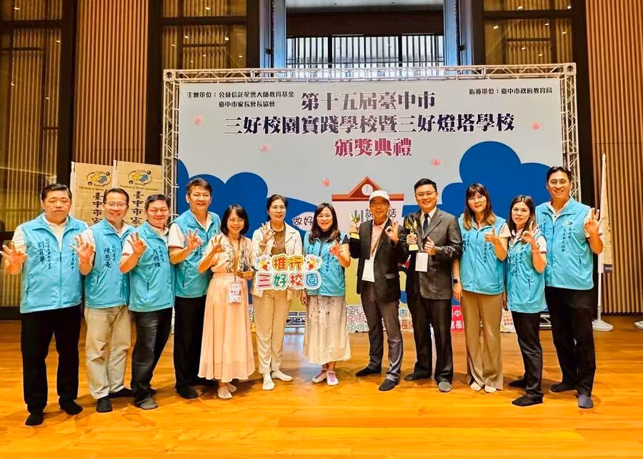 臺中市家長會長協會理事長韋麗莉指出,協會持續鼓勵校長推動三好教育,並結合AI數位學習、公益講座及校園活動等多元形式,深化學生的品德實踐,感謝教育局長期支持,共同打造「三好社會」的教育典範。