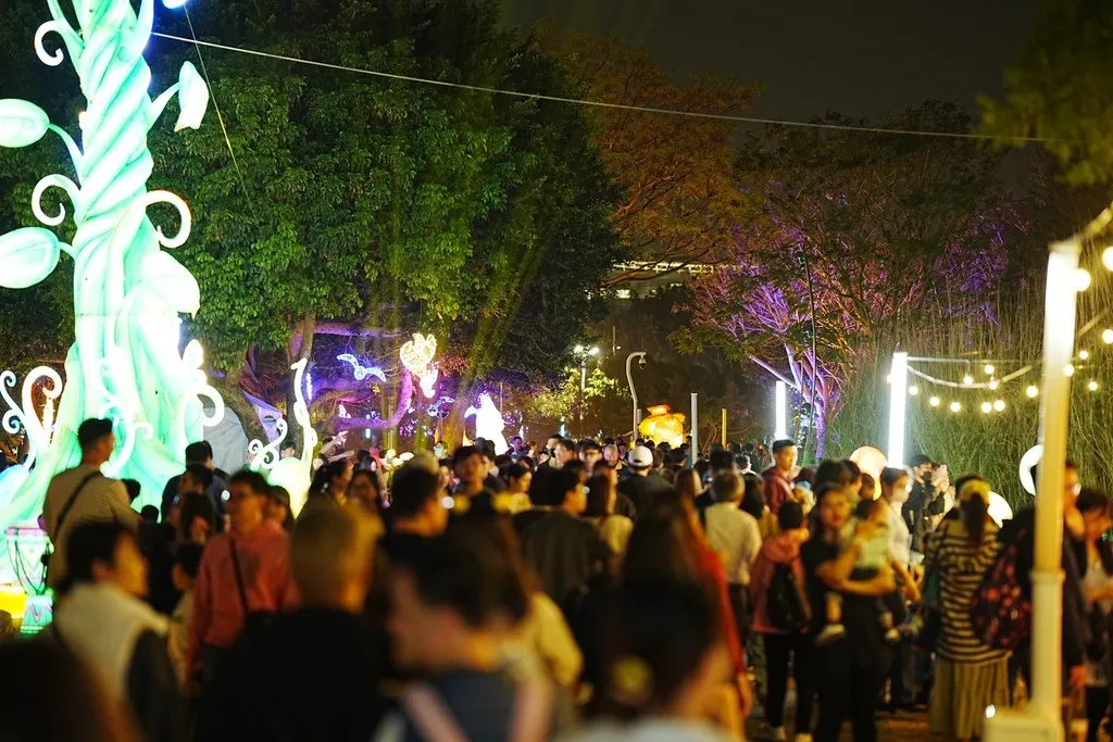走進「童趣歡樂谷」,金黃色的燈光宛如星河鋪展,搭配林間光影與繽紛燈飾,營造出宛如實境般的童話場景。燈區內的「幸福馬車」更是人氣爆棚,現場不僅有仙杜瑞拉驚喜現身與孩子近距離互動,更有許多小朋友在南瓜馬車前興奮排隊合影。許多祖孫三代同框拍照,讓原本只存在於故事書中的場景,轉化為全家人一起長大的珍貴共同記憶。