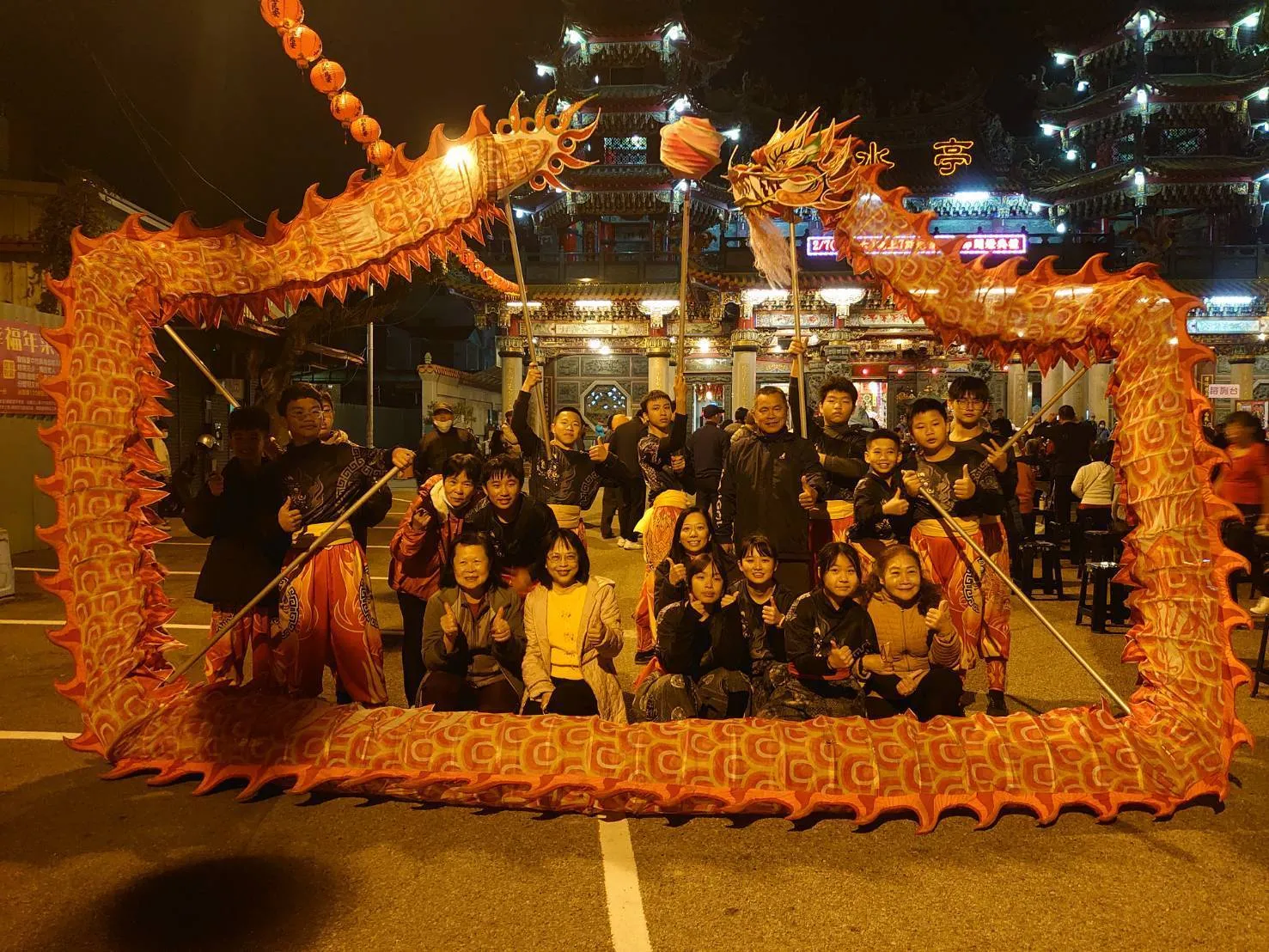 日前潭水亭觀音廟「元宵燈籠彩繪節啟燈儀式」邀請成軍不到半年的臺中市立潭子國民中學「祥龍鼓藝社」,獲擔任的開場表演嘉賓,祥龍鼓藝社學生以極具生命力的鼓聲與龍獅演繹,為地方年度盛事揭開熱鬧序幕,也正式宣告這支傳統技藝生力軍的誕生。