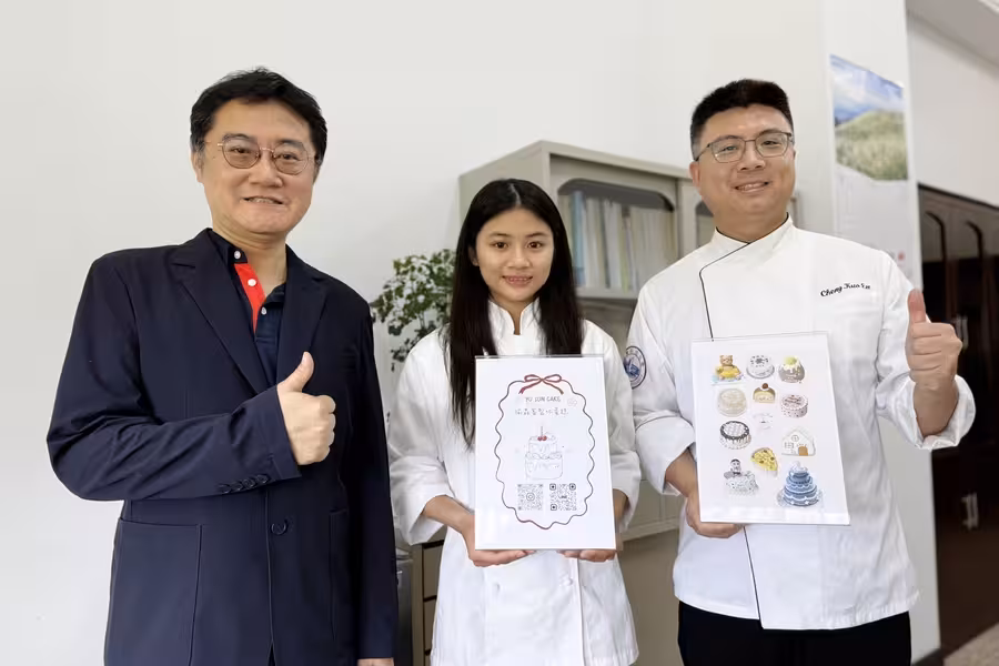 首次參與並與學姐合作的李昕融同學則分享,從構思到完成的每一階段,都體會到技職教育所帶來的自信與實力,「創作的過程不只是單純投入,更是一段學習與情感交織的旅程。」兩人將烘焙技術、食品科學與藝術美學相結合,成就這件兼具專業與溫度的作品,也展現中臺科大教育強調理論實踐、技術傳承的精神。能在全國公開徵件中脫穎而出,並於國家級展場公開展出作品,對兩位學生而言,無疑是畢業前最珍貴的榮耀與回饋。