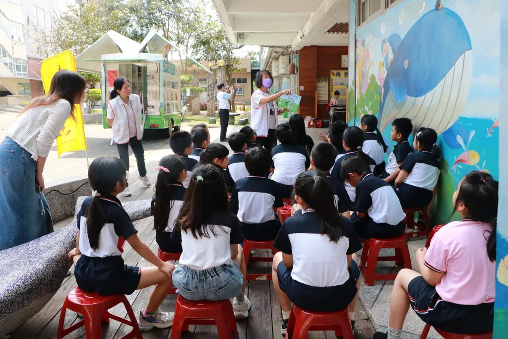 每月一次的行動閱讀服務已成為東寶學子最期待的時刻。四月份的書車服務中,提供了涵蓋繪本、橋梁書、科普讀物與品格教育等多樣化書籍。在老師的引導下,學生們有序地穿梭於書架間,專注翻閱、沉浸在書頁的世界中。這項服務不僅有效擴充了校內的閱讀資源,更讓閱讀突破教室框架,落實了「閱讀無所不在」的教育理念。