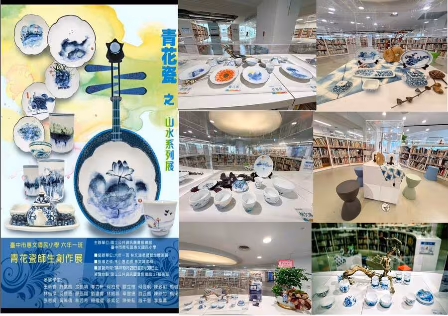 「藝術不是一節課,而是孩子看世界的方式。」臺中市惠文國小校長洪誌敬以此為教育理念,長期推動美感與文化課程。今年再度開花結果——由六年一班師生共同創作的「青花瓷之山水系列展」,自10月28日至11月30日於國立公共資訊圖書館總館五樓藝術區展出,讓孩子的青花瓷創作走出校園、走進城市藝文空間。