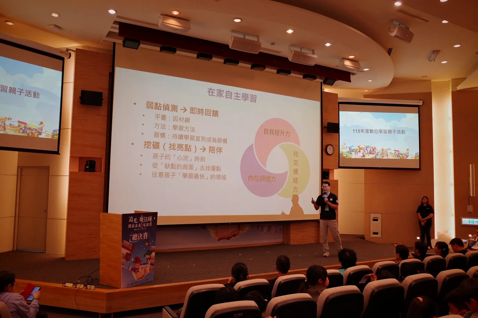 活動亮點之一為專題演講,特別邀請長期深耕數位議題的新竹市家長聯合會榮譽理事長王文賓,以「家長數位學習之路」為題進行分享。演講中除介紹「推動中小學數位學習精進方案」的政策重點外,更無私分享家長應如何陪伴孩子善用數位工具,協助其將科技力轉化為提升學習成效的關鍵利器。