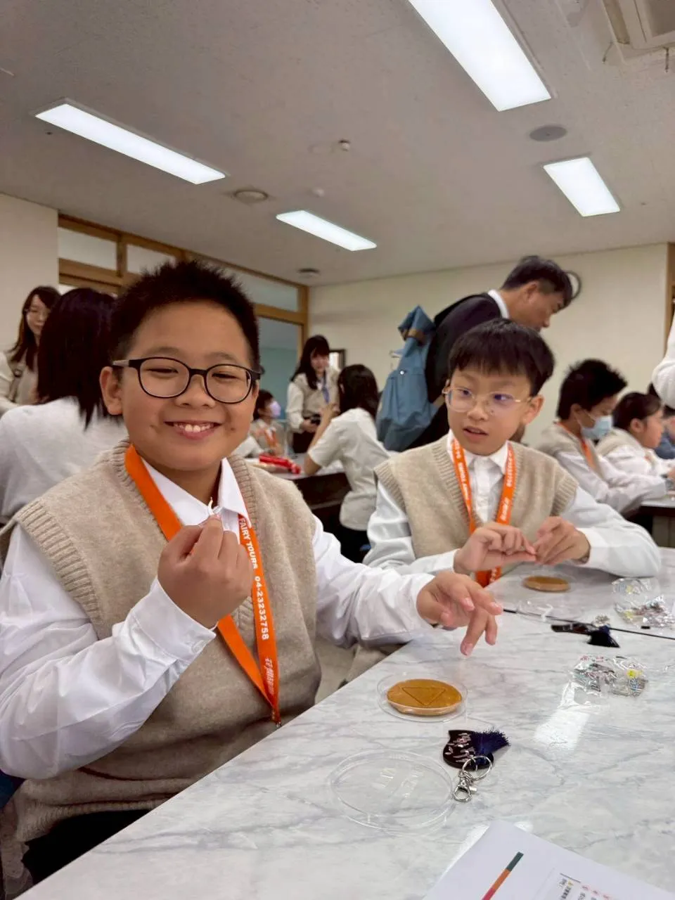在兩校共學過程中,成功國小的學生們首先展現熱情的國民外交,以韓語向韓方師生問候,隨即運用流利的英語,從 A 到 Z 創意介紹台灣的代表性建築、特色美食及文化底蘊。此外,學生更在現場帶來豐富的才藝展演,包含展現力與美的扯鈴、雙節棍、功夫扇,以及優美的舞蹈與直笛演奏,透過多元的藝術表現強化跨文化溝通能力,令現場師生留下深刻印象。兩校學生共同操作韓國傳統工藝「螺鈿」。充滿趣味的韓國古早味「椪糖」挑戰。除了靜態展示,交流活動亦安排了極具代表性的韓國文化體驗項目。兩校學生共同操作韓國傳統工藝「螺鈿」,在精細的製作過程中感受貝殼鑲嵌技術產生的獨特光澤,並完成精美的鑰匙圈作為紀念。隨後登場的是充滿趣味的韓國古早味「椪糖」挑戰,學生們模仿經典情節,運用牙籤小心翼翼地剝除外框,保留完整的模型形狀。學生賴幸莛興奮地表示,第一次接觸椪糖感到十分新奇,焦糖香氣與鬆脆口感讓她聯想到電視裡的生動情節。