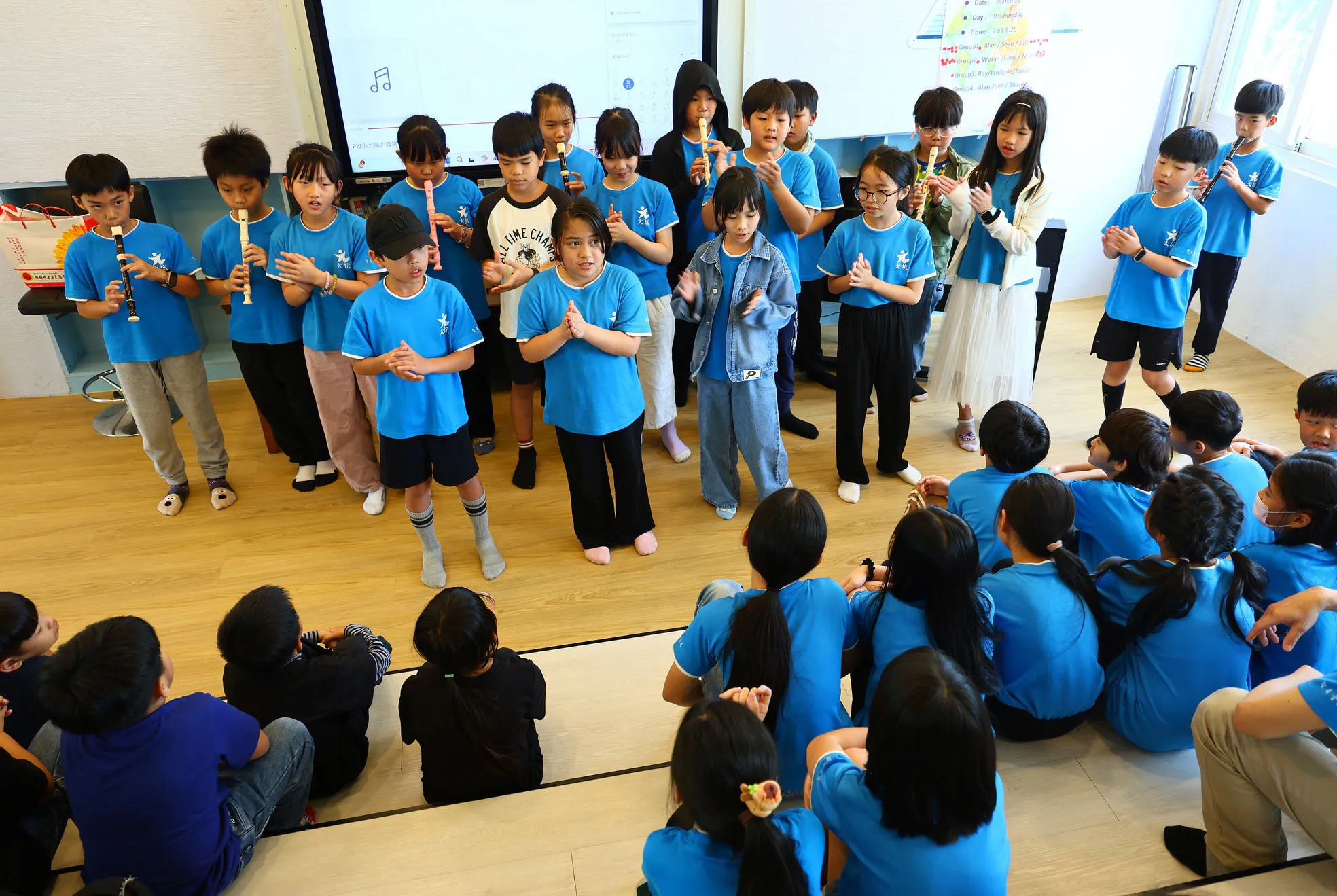 大坑國小以合唱與直笛表演回應交流。活動現場動靜皆宜,沙坑國小先以震撼的鼓樂表演揭開序幕,大坑國小則以悠揚的合唱與直笛演出作為回禮。除了藝文交流,兩校學生更在運動場上進行混合編組的大隊接力競賽,現場氣氛在加油聲中達到高潮。在課程接軌方面,大坑國小教師特別帶來 T.robot 課程,透過英語與程式積木的跨領域教學,讓兩校孩子在數位學習中激盪火花,展現資源共享的教育價值。