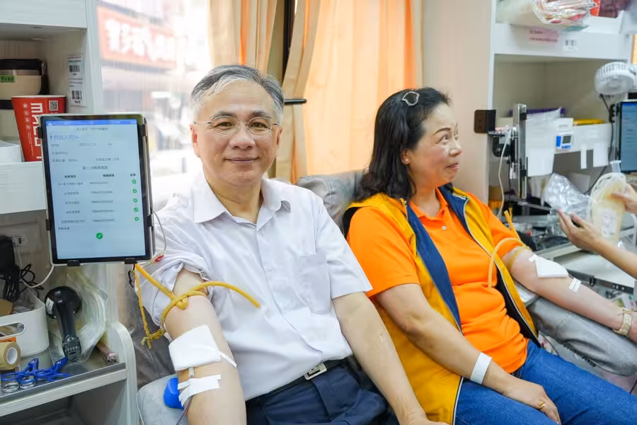 首場「朝陽捐血日」於台中霧峰區農會登場,由財務金融系系友會主辦,校長鄭道明親自挽袖捐血,以身作則展現對公益的支持。他指出,朝陽EMBA校友透過接力捐血回饋社會,持續推動健康城市的發展,不僅實踐高等教育鏈結全球永續目標的精神,也彰顯大學在社會責任上的承諾與影響力。