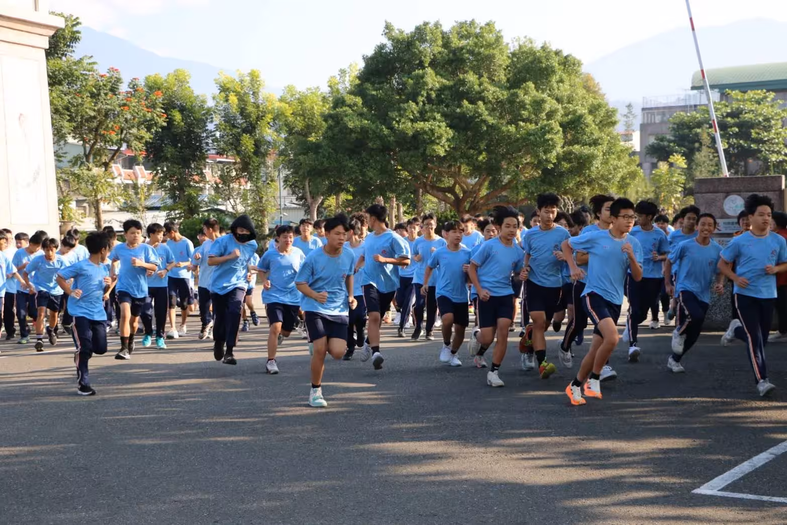 佛光山均頭國民中小學舉辦114學年度第一學期「環校道路路跑」,在微涼晨風中,由小學部率先集結於「正見仁心」校訓前廣場做暖身,隨後依序從側門整隊出發。校方表示,此活動旨在培養規律運動習慣與班級合作精神,並作為學生體能與耐力的期初檢核。
