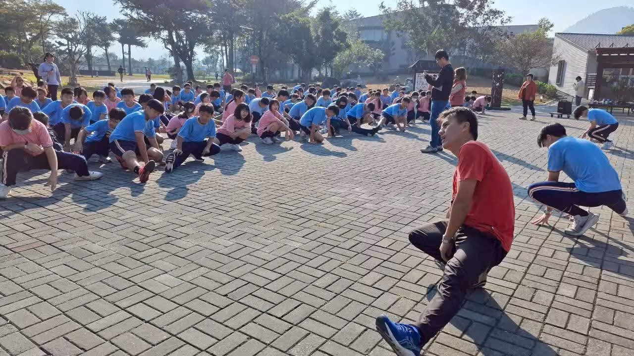 本校占地近五公頃,動線以校園一圈為單位:國小部跑一圈、國中部跑兩圈,分流起跑、分站補給與安全宣導同步到位。起跑前,一、二年級學童在鳴槍聲中捂著耳朵、躍躍欲試;接續登場的國中組步伐穩健、節奏明確,形成一幅「哥哥姊姊帶頭跑」的成長畫面。學務主任全程在隊伍最後壓陣,被學生暱稱為「趕鴨人」,以實際行動陪伴每位同學完賽,象徵「沒有人被落下」。